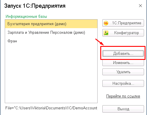 3. В открывшейся форме установите переключатель в положение "Создание новой информационной базы"и перейдите к следующему шагу по кнопке "Далее >". 4. Установите переключатель в положение "Создание информационной базы без конфигурации ... " (нижнее положение переключателя) и перейдите к следующему шагу по кнопке "Далее >". 5. Укажите наименование информационной базы и выберите ее тип расположения, по кнопке "Далее >" перейдите к следующему шагу. 6. Укажите каталог, где будет физически располагаться информационная база, по кнопке "Далее >" перейдите к следующему шагу 7. Укажите параметры запуска информационной базы. Эти параметры для рабочих баз обычно устанавливают специалисты. Оставьте настройки, предложенные программой по умолчанию – оба переключателя в положении "Выбирать автоматически". 1. Кнопка "Готово".