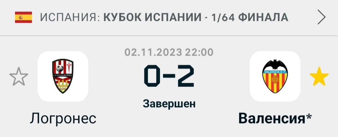 Всем привет друзья. Сегодня я для вас разберу матч первого раунда кубка Испании по футболу. Логроньес на своём поле принимал Валенсию. За всю историю команды играли между собой три раза. Во всех случаях их очные противостояния были сыграны в рамках одной шестнадцатой финала кубка Испании. Два матча прошли в 2010 году, один в 2020. Спустя 3 года Валенсия и Логроньес снова встретились. Только уже в рамках первого раунда кубка Испании. Логроньес Это команда из третьего по силе дивизиона страны. Многие перед матчем предполагали, что Валенсия сможет учинить разгром такому сопернику. На самом деле всё не так просто, как кажется. В этом сезоне Валенсия обыгрывает своих соперников с разницей максимум в три мяча. Интересно, что Летучие мыши в этом сезоне побеждали с таким преимуществом только один раз. Это было в матче против Атлетико в конце сентября. В остальных случаях Валенсия обыгрывала своих соперников с разницей в один или два мяча. Что то подобное могло быть во вчерашней игре. С первых