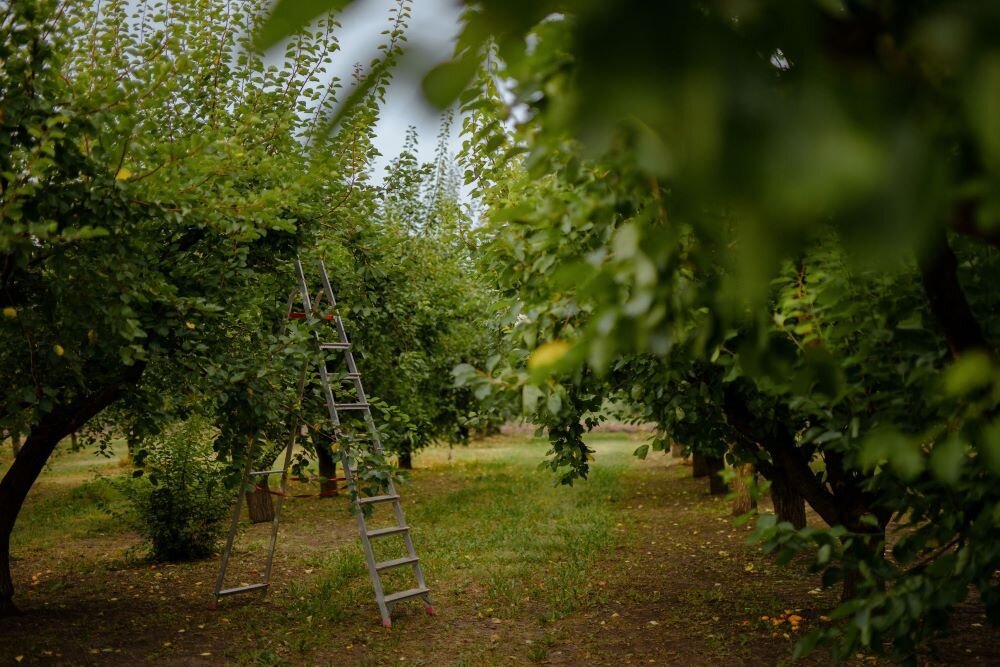 Ферма находится на месте расположения хутора, которым признали неперспективным и почти сровняли с землёй. Сейчас тут есть и сады, и поля. Яблоки, груши, сливы, черешня, вишня, персики, абрикосы, клубника, малина, голубика, инжир, айва и большое количество овощей, включая артишоки и спаржу. Крупные хозяйства не могут себе позволить большого разнообразия культур. Они работают на эффекте масштаба и специализации.