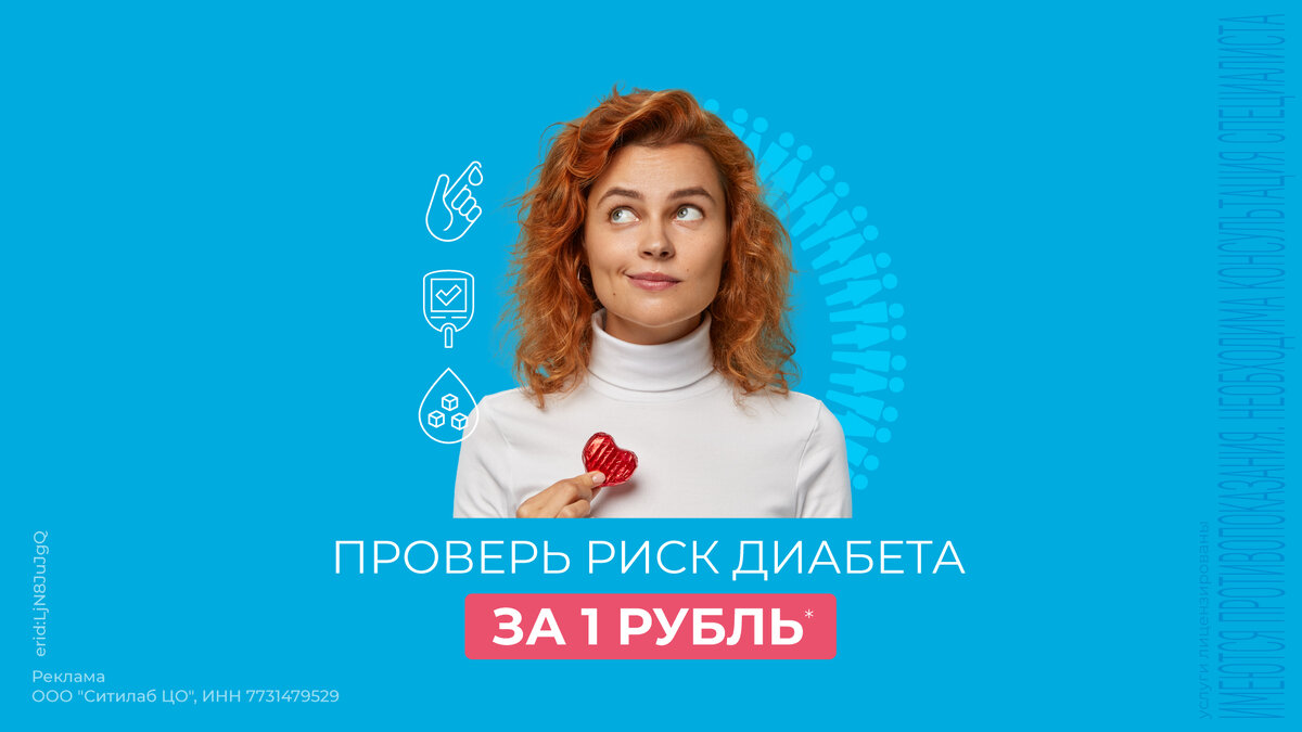 Знаете ли вы, что: А вы давно проверяли свои риски? В лаборатории СИТИЛАБ это можно сделать всего за 1 рубль! *Акция проводится до 14.11.2023 г. Взятие крови оплачивается дополнительно. Подробнее: www.citilab.ru, по тел. 8-800-100-36-30.