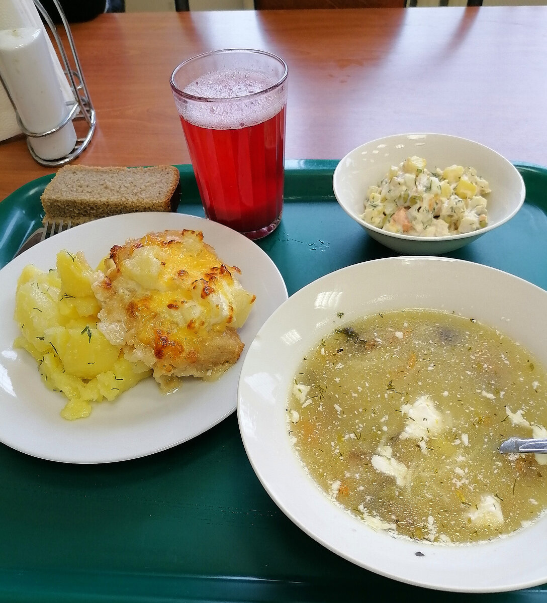 Еще одна статья на тему работы. Вчера я описывала свой обед и у многих возникли разные вопросы. Вот сейчас я на них и отвечу сразу всем. У нас на работе предусмотрено горячее питание. Раньше нам выдавали талоны, сначала на 120 рублей, потом на 130. Полный обед из трех блюд плюс компот стоил примерно 250-300 рублей. Все платили талонами, а к концу месяца талоны у всех заканчивались и в столовой почти никого не было. Но можно было и на один талон питаться. Я так тоже делала. Брала суп, салат и компот. Хватало одного талона. В общем повара никогда не могли рассчитать на какое количество людей готовить. Поэтому решили все сделать по-другому. Вместо талонов нам стали начислять эти деньги в зарплату. А на питание надо было сдавать наличные в размере 200 рублей за обед. Получалось, что надо доплатить всего 70 рублей и полноценно питаться горячими и свежеприготовленными обедами из трех блюд плюс компот. Получилось очень выгодно. Раньше мы платили за такой же обед почти 300 рублей. Но многи