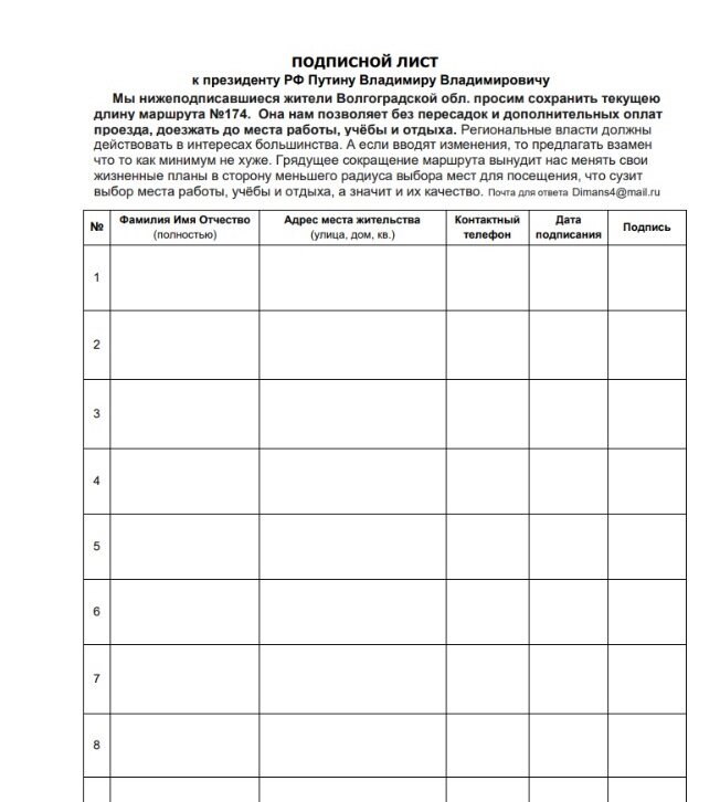 Тем временем по салонам №174 волгоградцы могут видеть расклеенные объявления следующего характера. На данный момент их призывают проявить активность, чтобы отстоять нынешнюю длину маршрута.