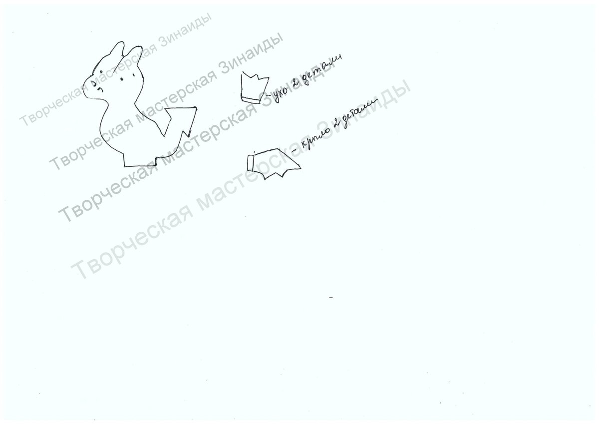Выкройку дракончика распечатать или перерисовать с компьютера. Высота 5 - 6см. Определяем направление долевой нити. Слегка растянем ткань. Сначала одну сторону, затем другую и сравниваем. Та сторона, которая меньше тянется и есть долевая. Ткань складываем в два слоя. Выкройку раскладываем по долевой в длину. Простым карандашом обводим выкройку и закрепляем ткань иголками.