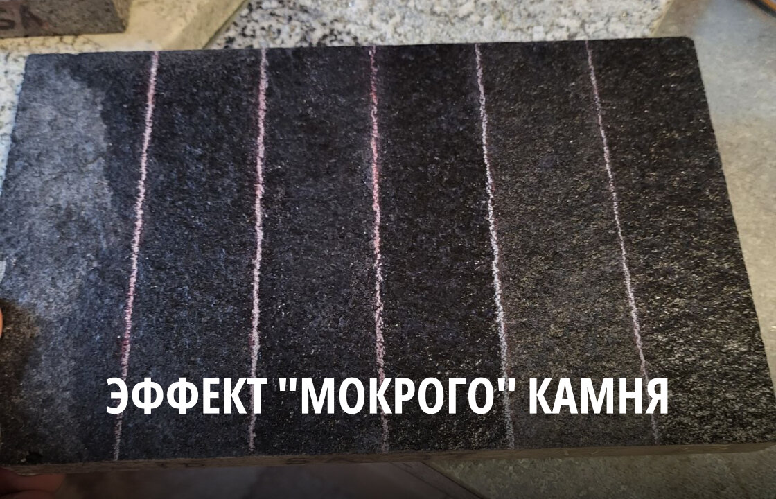 Что такое «мокрый» эффект? Как его получить на камне? Чем отличаются средства разных производителей? Очень часто заказчики просят сделать так, чтобы фактурный или просто пиленый камень стал выглядеть как полированный - то есть приобрёл бы такой же яркий и живой цвет, как будто его только что отполировали. Природа распорядилась так, что такой же праздничный вид и насыщенный цвет камень приобретает, когда его поверхность смочена водой. Отсюда пошло расхожее выражение "мокрый" эффект или эффект "мокрого" камня. Все знают, что у фактурного камня есть такое свойство - мокрый он очень красивый, а сухой он невзрачный, блёклый и вообще неузнаваемый. В связи с этим есть определенный запрос на средства, которые сделают бледный камень снова ярким, контрастным и интересным. Производители химии, занимающиеся этим вопросом, решают его по-разному и результаты их деятельности тоже значительно отличаются. Мы, как непосредственные участники рынка снабжения камнеобработки, очень заинтересованы в том, что