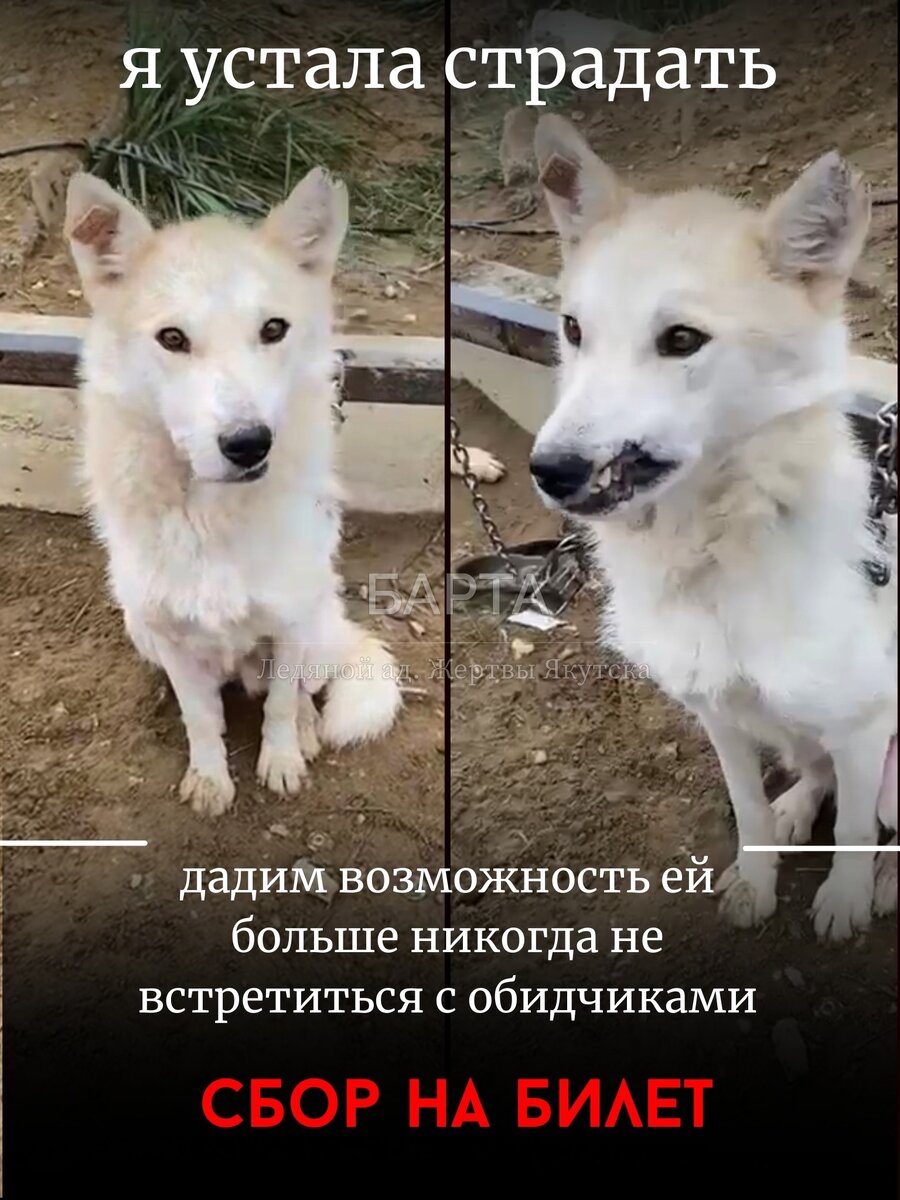 Шрам через всю морду, изуродованная пасть, надорванный кончик уха - кто и зачем так поступил с белоснежной красавицей Хелью, мы никогда не узнаем... Да и нужно ли знать об этом, когда теперь нашей единственной задачей остаётся помочь ей забыть прошлое и поверить в людей заново?