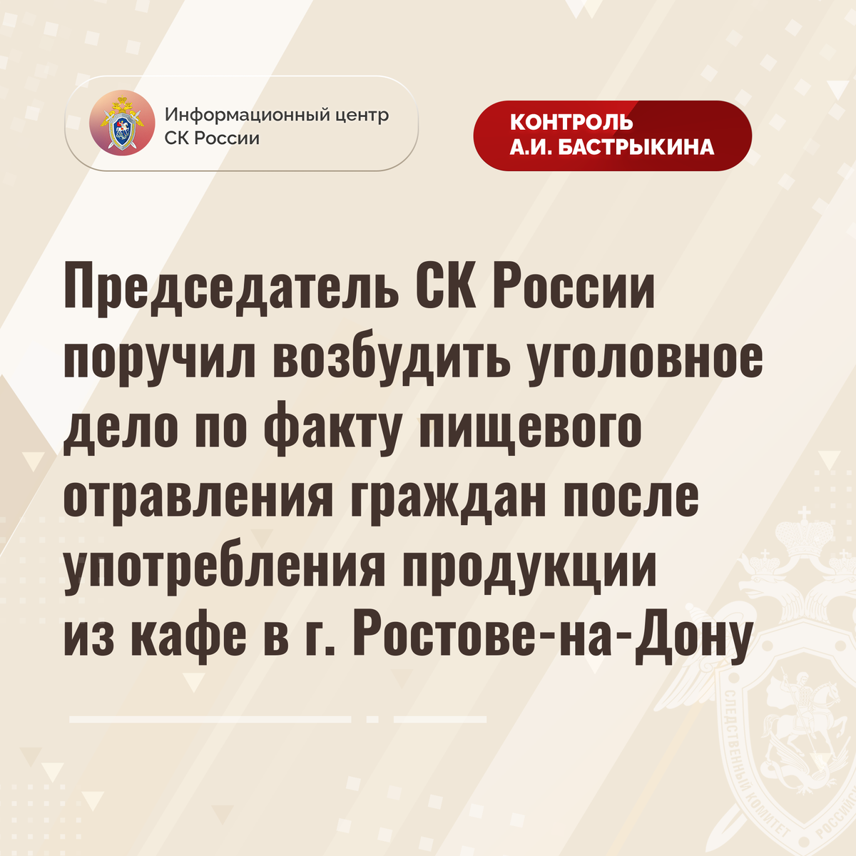 Председатель СК России поручил возбудить уголовное дело по факту пищевого отравления граждан после употребления продукции из кафе в г. Ростове-на-Дону