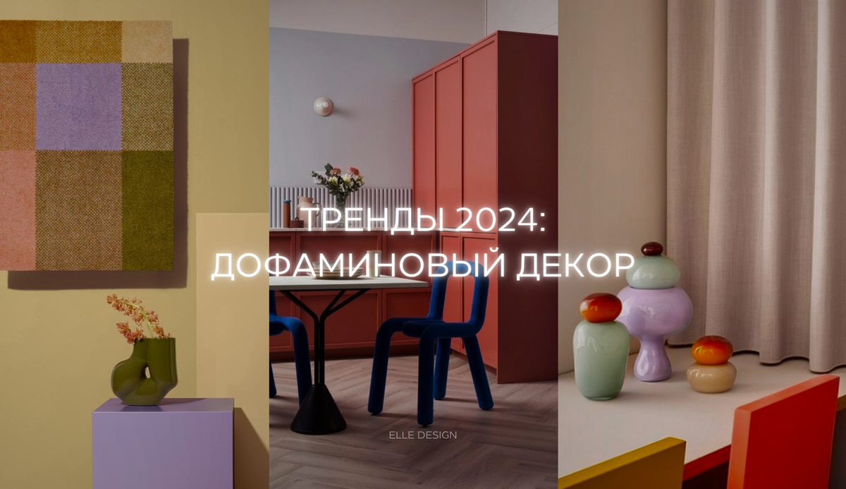 (пока еще) не самым очевидным, но очень интересным трендом под названием "дофаминовый декор". Мода на стиль Барби с его розовой атрибутикой постепенно утрачивает актуальность, как это часто бывает с громкими тенденциями. Однако она не исчезает полностью. Этот беззаботный и немного инфантильный стиль получил новое воплощение в сфере интерьерного дизайна, превратившись в совершенно новую моду. Тренд, который мы будем обсуждать сегодня, направлен не только на создание красивых интерьеров, но и на повышение настроения и эмоционального благополучия обитателей дома. Готовы начинать? Тогда поехали! С ЧЕГО ВСЕ НАЧАЛОСЬ? О дофаминовом декоре начали говорить этим летом, когда крупные интерьерные издания, такие как AD и Homes & Gardens, посвятили ему внимание. Затем в сентябре на парижской выставке Maison & Objet, под девизом Enjoy! In quest