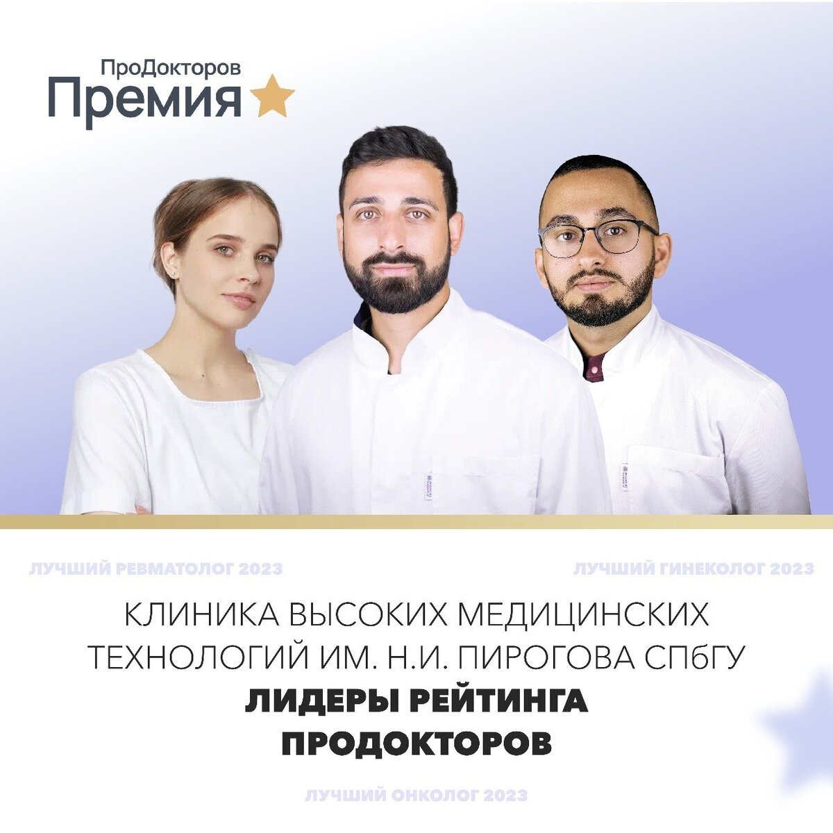 Клиника высоких медицинских технологий им. Н.И. Пирогова СПбГУ заняла три места в рейтинге «Топ-20 государственных медицинских учреждений Санкт-Петербурга», который был составлен крупнейшим агрегатором отзывов пациентов — сайтом «ПроДокторов». Уже несколько лет в номинации «Государственные медицинские учреждения» премия присуждается нашей команде, а врачи Клиники занимают лидирующие позиции в своей специальности. В этом году, по мнению пациентов, Рустам Шахалиев стал первым среди гинекологов. Рустам Алигисметович — оперирующий гинеколог урологического отделения. Он написал множество научных работ, активно учавствует в крупных урологических конференциях. За несколько лет работы в Клинике он смог помочь многим женщинам и в ответ получил от них признание и искренние добрые слова. Среди онкологов первое место досталось Руслану Ахмедову — врачу-онкологу онкологического отделения №1. Руслан Мерзиалиевич уже более восьми лет лечит больных со злокачественными заболеваниями молочной железы, кот