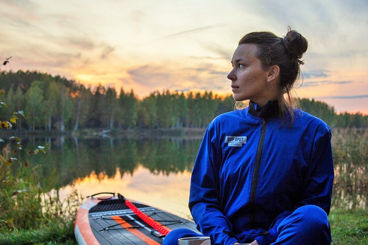 Привет! Я Саша, мне 34, и я стою на сапе с 2019 года. Стою или сижу. Иногда лежу и смотрю на небо, но не путешествую и не сплавляюсь по рекам. До недавнего времени я лишь однажды выходила на сапе на реку и ни разу не была в походе. Даже так: ни разу не ночевала в палатке больше двух ночей подряд.