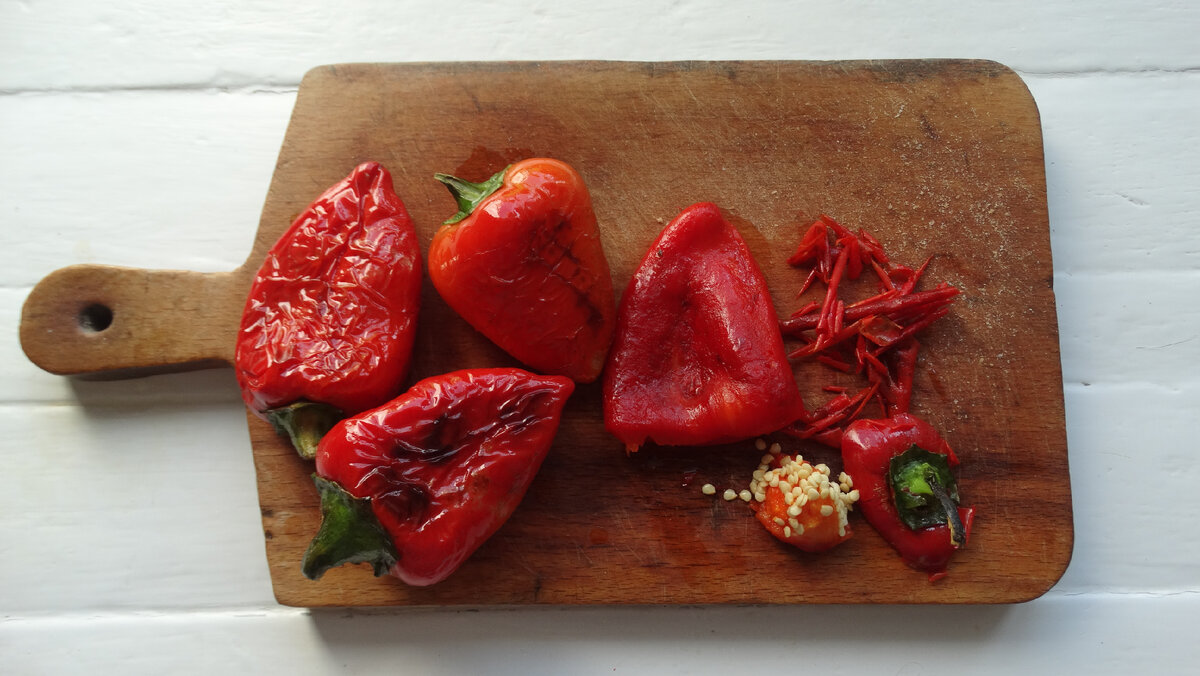 Эта икра стала моей любимой с первой ложки. Я до сих пор удержаться не могу от добавки. Правда, я не сразу научилась готовить блюдо. Пробовала его делать из разных овощей. Но остановилась на перце. Такая икра получается вкусней всего. Она и сладковатая, и острая, в ней есть даже кислинка. Одним словом, я влюбилась в свой айвар из перца. Но есть одно «но»! чтобы икра получилась классной, нужно подобрать правильный перец, и правильно обработать его. Не любой перец подойдет. Вкусней всего айвар из полностью созревшего перца, он более сладкий и во вкусе его нет горчинки. Поэтому смело выбираем красный перец для айвара. Я одно время покупала перец капия (именно этот сорт на даче у меня не растет, чтобы я ни делала) для этой икры. Мне нравится более яркий и насыщенный вкус и аромат капии. Когда есть в наличии правильный перец, его нужно уметь подготовить. Я всегда запекала перец, как это написано в рецептах. Но последнее время мне больше нравится айвар из поджаренного перца. Он вбирает в се