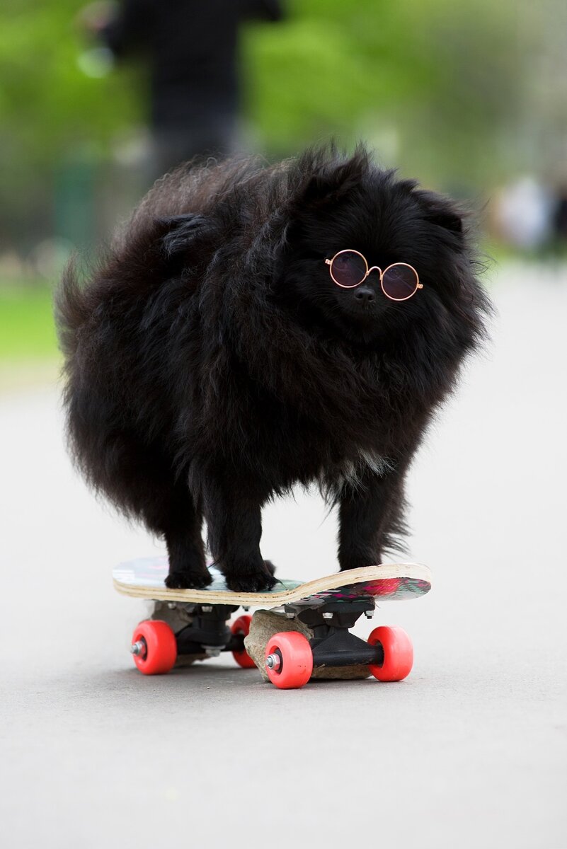 Давно мечтала сделать стильную фотосессию своей собаки Вики на скейтборде в очках. Скейт я купила еще год назад, тренировала Вику кататься на нем. А модные очки приобрела к Новому году. Но все не получалось воплотить задуманное, пока наконец звезды не сошлись! Моя звезда Услада Блек предстала в модном образе на скейте. Ее шубка была не загруммирована, что придавало образу естественность. К сожалению, я не догадалась заблокировать колеса скейта, поэтому приходилось удерживать мадам с помощью камней, чтобы она не укатилась в закат. Но нам удалось сделать отличные кадры, которые передают всю прелесть идеи фотосессии собаки на скейте!