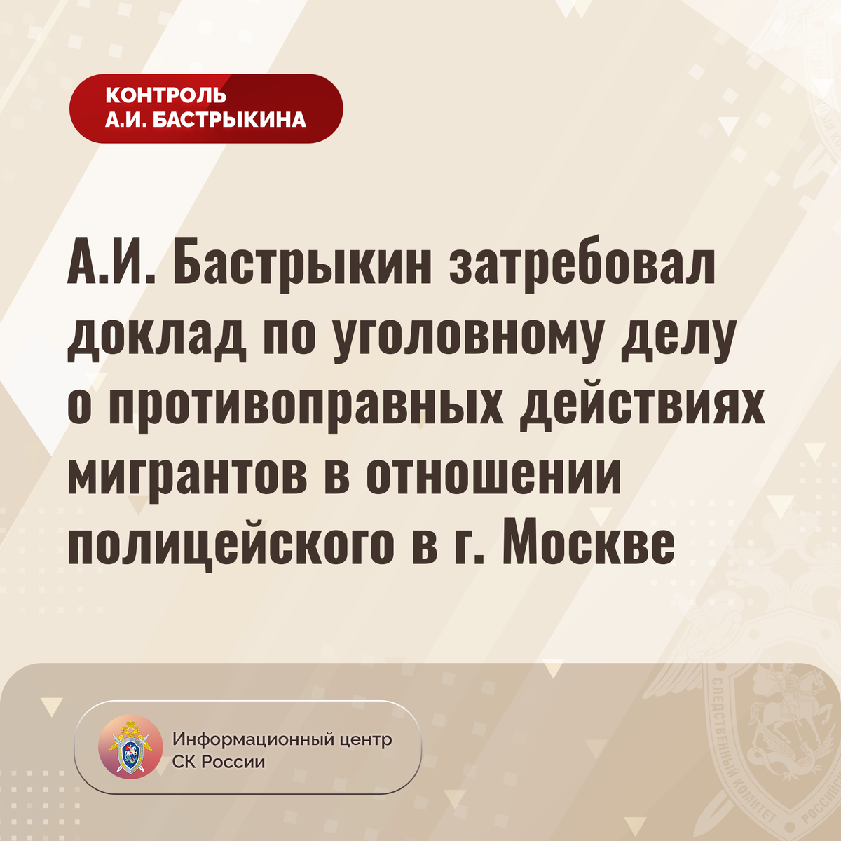 А.И. Бастрыкин затребовал доклад по уголовному делу о противоправных действиях мигрантов в отношении полицейского в г. Москве