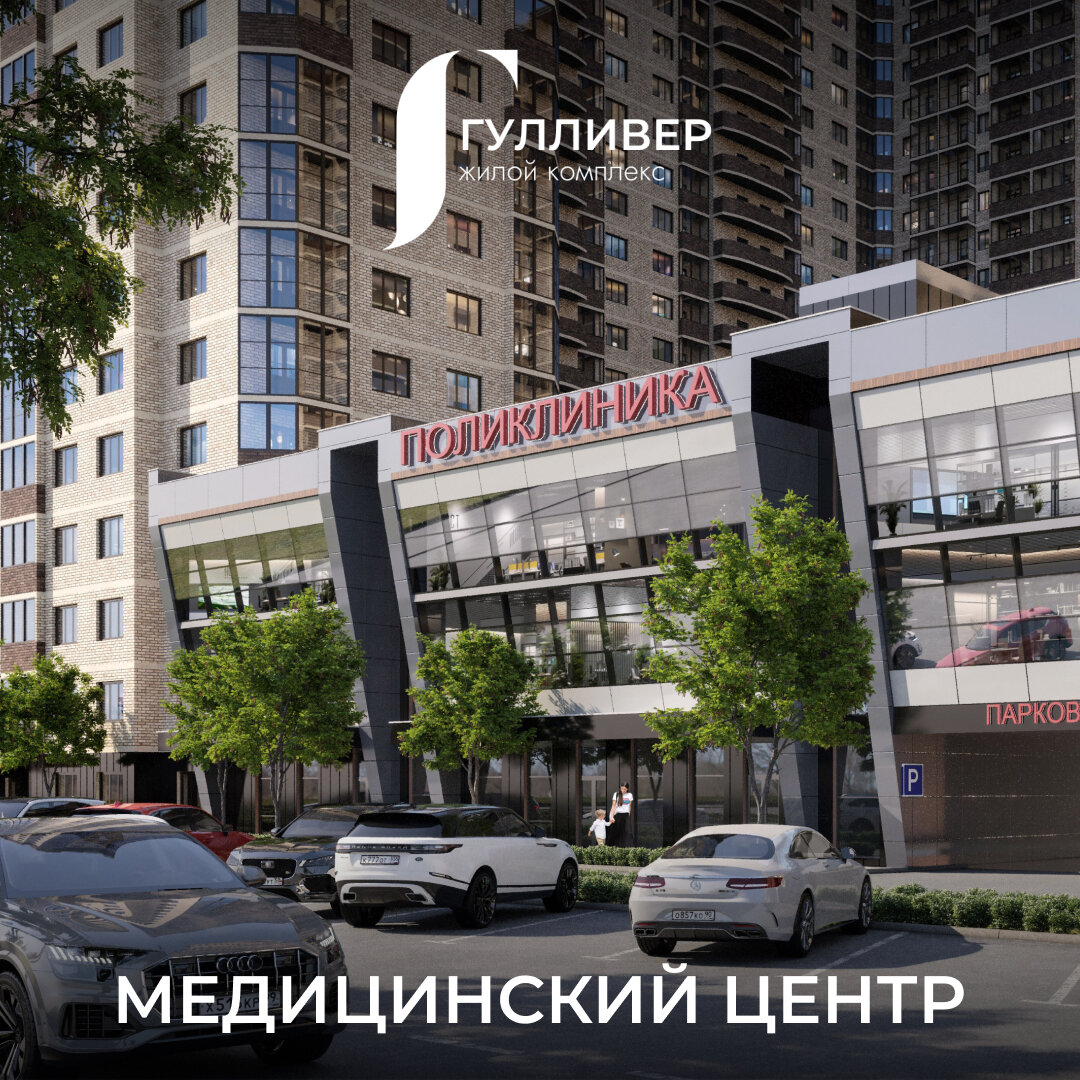 Компания «ЕкатеринодарИнвест-Строй» планирует реализовать проект медицинского центра площадью 2500 м2 уже в 2025 году. Трехэтажное здание медицинского центра будет располагаться на территории строящегося жилого комплекса «Гулливер», расположенном на улице Российская, 257/7. В планах у нас - открыть поликлинику с педиатрическим отделением и широким перечнем узких специалистов. Сдача первой очереди ЖК «Гулливер» произойдет в 2024 году, а спустя еще год откроется современный медицинский центр.