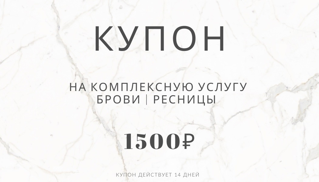 на: «комплексную услугу» БРОВИ | РЕСНИЦЫ1.500₽ только в Ноябре !!!обычная цена 2.300₽В услугу входит:• Ламинирование бровей + Ботокс + Окрашивание + Коррекция.• Ламинирование ресниц + Окрашивание + 3-х ступенчатый уход за ресничками.