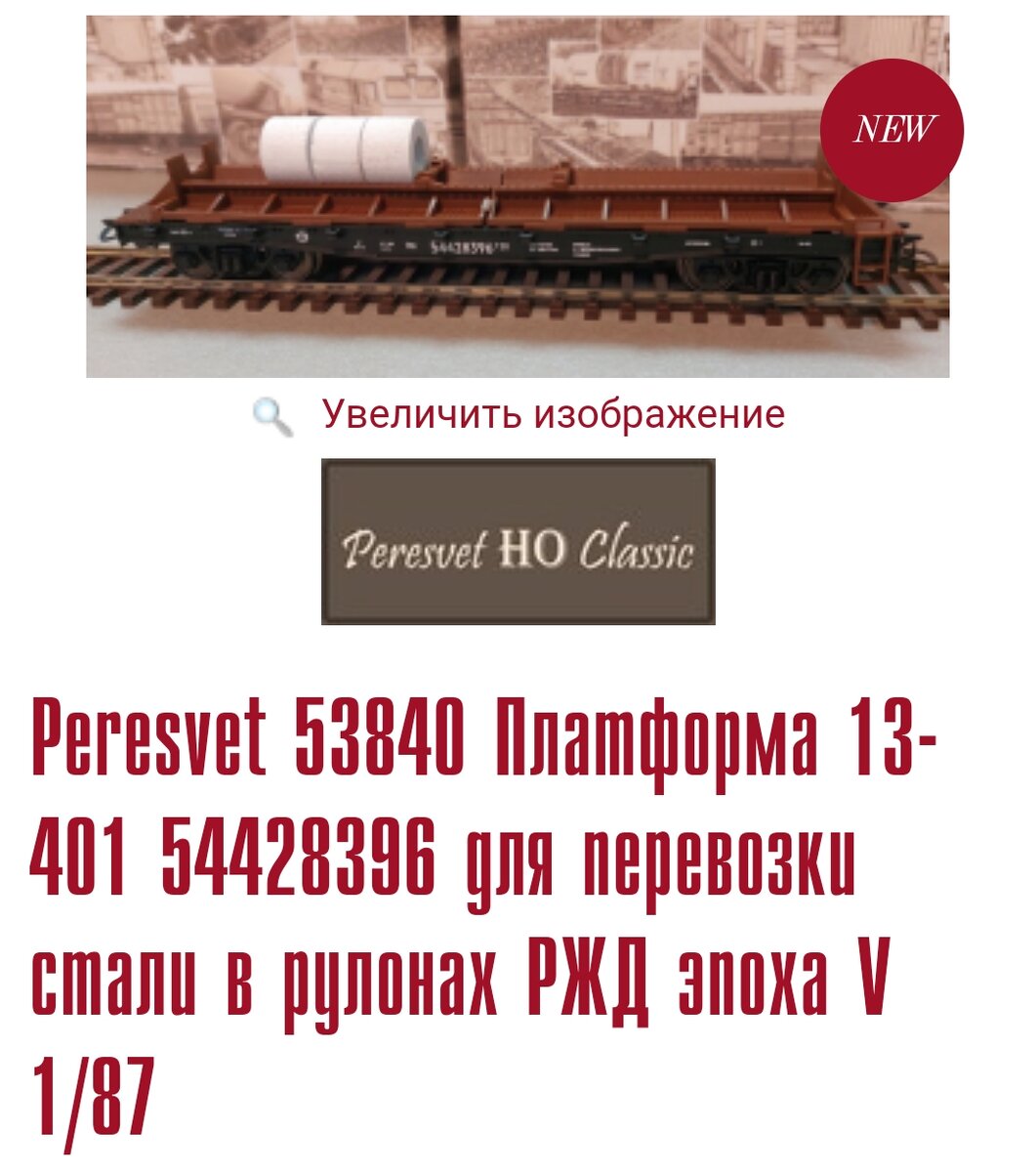 Магазин Роколенд порадовал очередной новинкой от производителя моделей в масштабе 1:87 Peresvet H0 Classic. На этот раз выпущена необычная платформа - вагон предназначенный для перевозки стали в рулонах.
