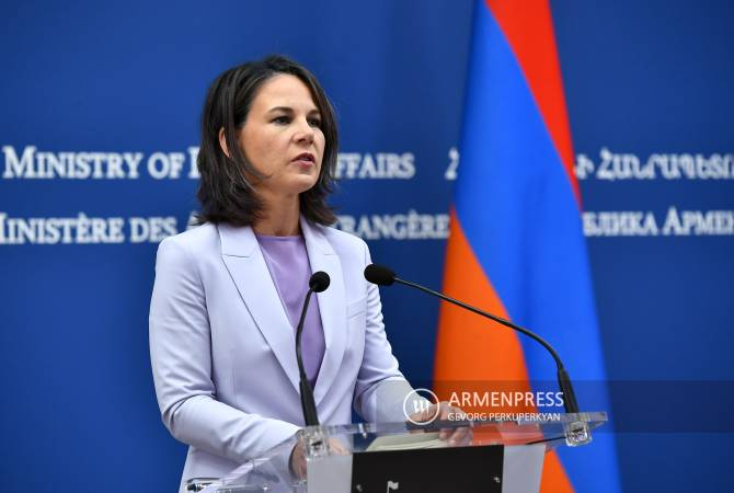 Европейский союз ожидает более крепких и глубоких отношений с Арменией. Как сообщает Арменпресс, на состоявшейся в Ереване пресс-конференции по итогам встречи с министром иностранных дел Армении Араратом Мирзояном об этом заявила министр иностранных дел Германии Анналена Бербок, комментируя заявление премьер-министра Никола Пашиняна в Европарламенте о том, что Армения готова углублять отношения с ЕС настолько, насколько к этому готов ЕС. По ее словам, Армения и Германия обмениваются идеями в этом направлении и существуют большие возможности для сотрудничества. “Мы тесно обмениваемся мыслями, идеями, и существует больше возможностей для сотрудничества. В эти трудные геополитические времена крайне важно заключить мирный договор между Арменией и Азербайджаном, который приведет к миру в регионе. В этой ситуации особенно экономические отношения могут быть углублены еще больше”, - сказала Бербок, добавив, что в регионе необходим мир, чтобы был приток крупных инвестиций, развивалась экономик