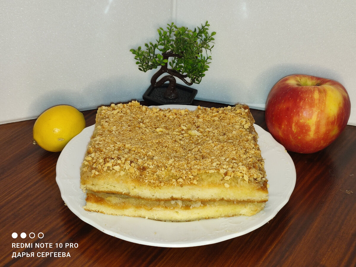 Нежный, сочный пирог с начинкой из свежих яблок и лимона. Ароматный, вкусный, в меру сладкий