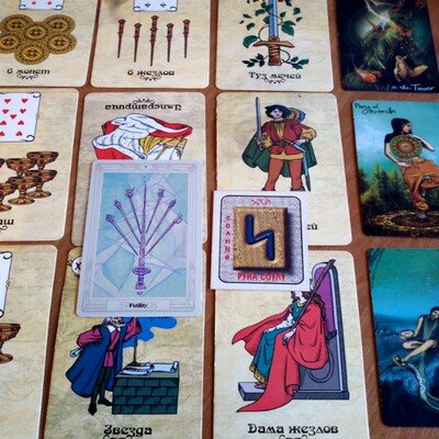 Что бы ни случилось в жизни Козерогов в данный период, они не теряют надежды на то, что все будет хорошо – слишком часто в последнее время в расклады приходит старший аркан Звезда. Именно она помогает вам стойко переносить все жизненные невзгоды. Талисман месяца Если в этом месяце у Козерогов возникнут запутанные ситуации, на помощь придет руна Соулу (Солнце). Она сгладит все противоречия, с которыми вы столкнетесь, и поможет принять правильные решения. Проходя через трансформацию личности, держите при себе этот позитивный знак. I декада Карты периода – Шестерки – пентаклей и жезлов, Туз мечей Карта атмосферы – старший аркан Башня У Козерогов наступил период без сложностей в делах. Вы успешно развиваетесь материально, реализуя намеченные планы. Стабилизируется ситуация в финансовой сфере. Налаживаются отношения со своим окружением. Все идет размеренно и спокойно, своим чередом. Никто не влияет на ваши решения и действия – все проблемы вы устраняете самостоятельно. Это приводит вас к за