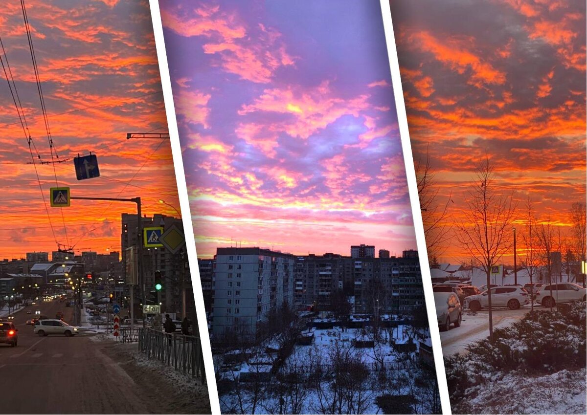 Появились кадры огненного рассвета в Новосибирске 4 ноября