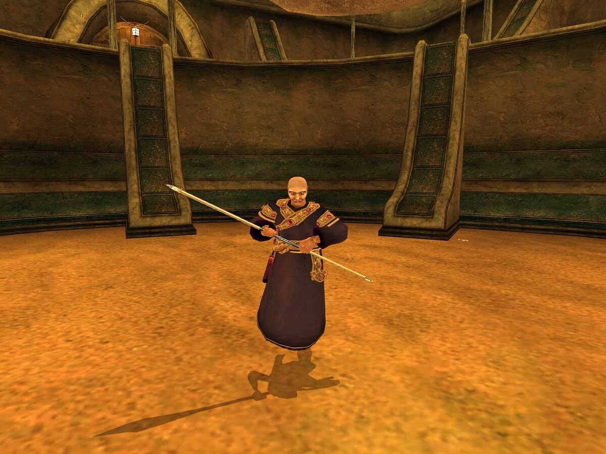 Я видел, как ты жаждешь власти и престижа, которыми обладаю только я, как глава Гильдии здесь, в Вварденфелле. Если ты действительно думаешь, что сможешь занять мое место, встретимся на арене для смертельного поединка.