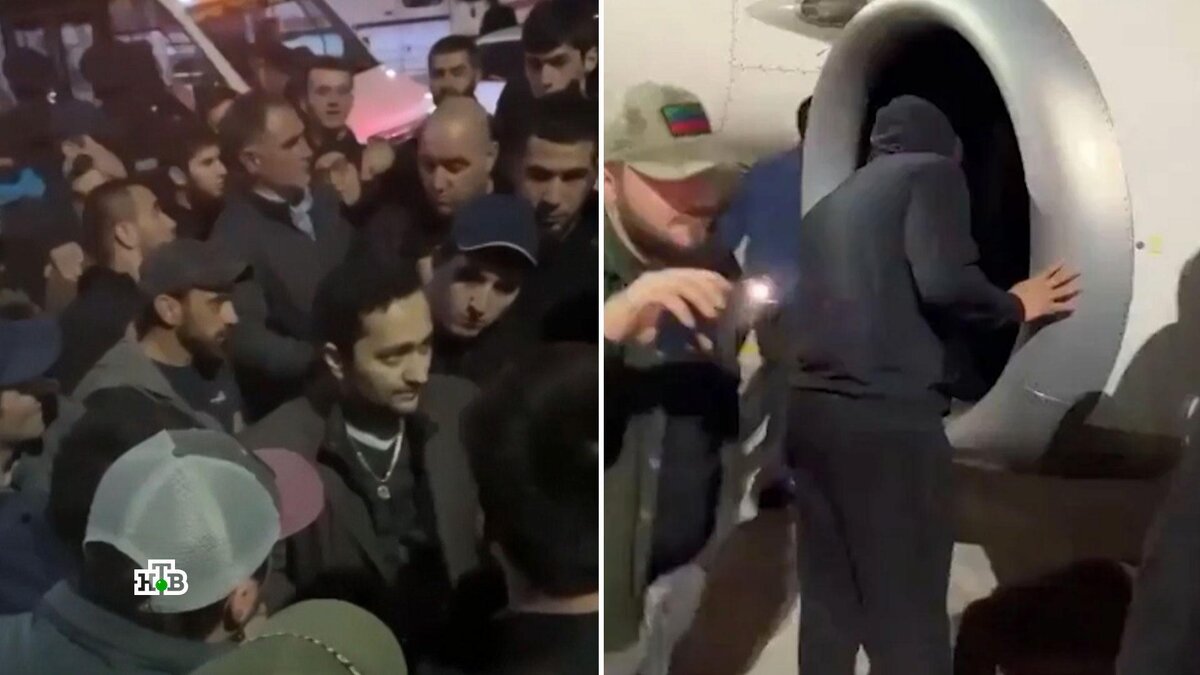 [ Смотреть видео на сайте НТВ ] Истерику о прибывающем в аэропорт Махачкалы рейсе из Тель-Авива, который якобы везет «израильских беженцев», начал разгонять анонимный Telegram-канал. В нем же появилась подробная инструкция о том, куда идти и как действовать. В результате у входа в аэровокзал собралась толпа, которая прорвалась в здание воздушной гавани, а затем и на летное поле. Весь этот «неприятный и нездоровый движ», как писали потом о событиях очевидцы в соцсетях, продолжался несколько часов. Взбудораженные мужчины обшаривали закоулки и даже заглядывали в двигатель самолета, что недвусмысленно говорит о состоянии тех, кто поддался на провокацию. Сейчас в аэропорту Махачкалы уже почти не видны следы разрушений, а ведь совсем полиция теснила прорвавшихся на взлетное поле людей. Отдельные представители этой пестрой толпы, подсвечивая себе фонариками смартфонов, даже в турбину заглядывали, пытаясь найти спрятавшихся пассажиров рейса Тель-Авив — Махачкала с израильскими паспортами. Сейч