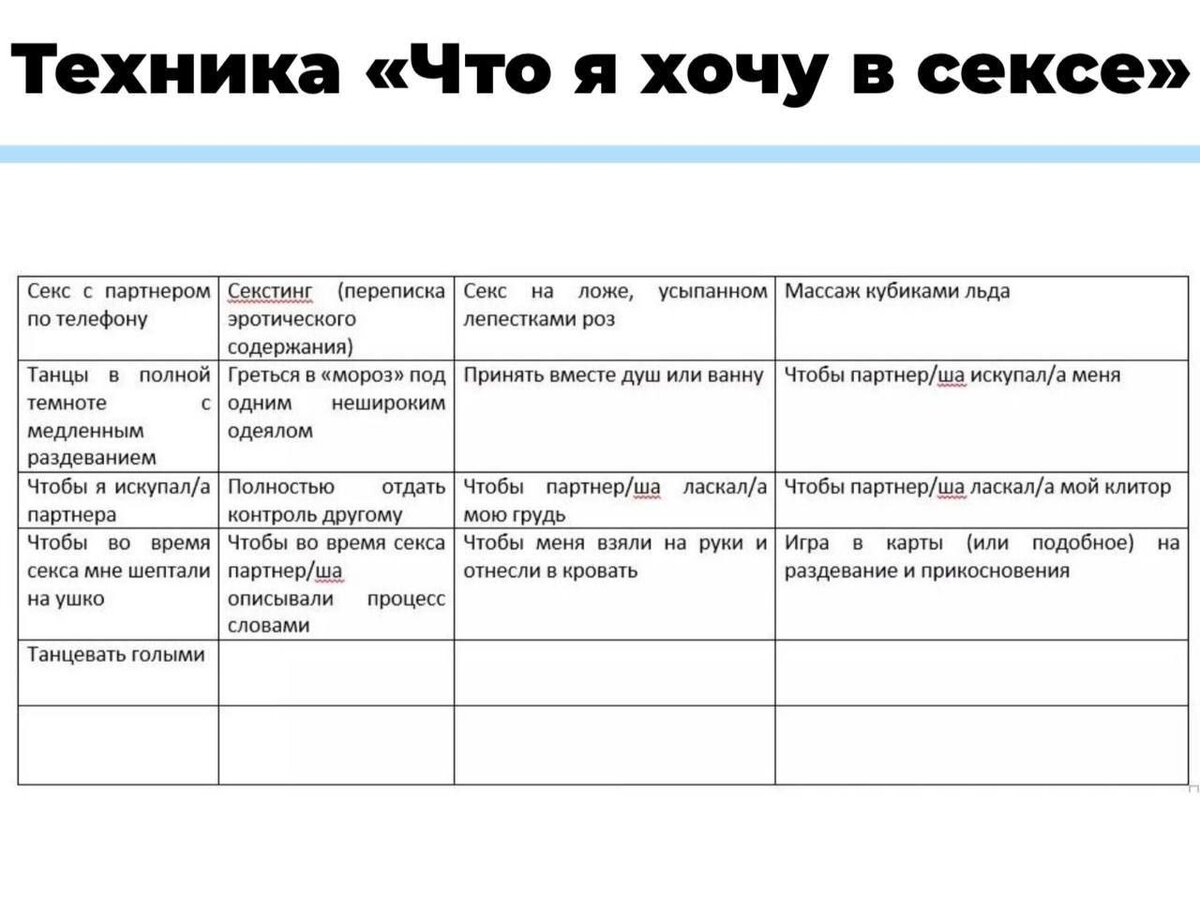 Внимательно ознакомьтесь с карточками, представленными в этом посте. Выберите то, что считаете желанным, приемлемым и то, что МОЖЕТ БЫТЬ попробовано. Распечатайте карточки и нарежьте их. Сложите их в шляпу 🎩 и, когда окажетесь с мужчиной в постели, извлекайте и исполняйте сексуальные желания друг друга. Или в один день один из вас исполняет, а другой принимает, после чего поменяйтесь ролями. Поделитесь своими реакциями, если уже хотите поиграть в эту игру🔥 Обязательно оставьте комментарий о том, что вам абсолютно не подходит из предложенных вариантов на карточках, и что, напротив, вам очень нравится 🌹