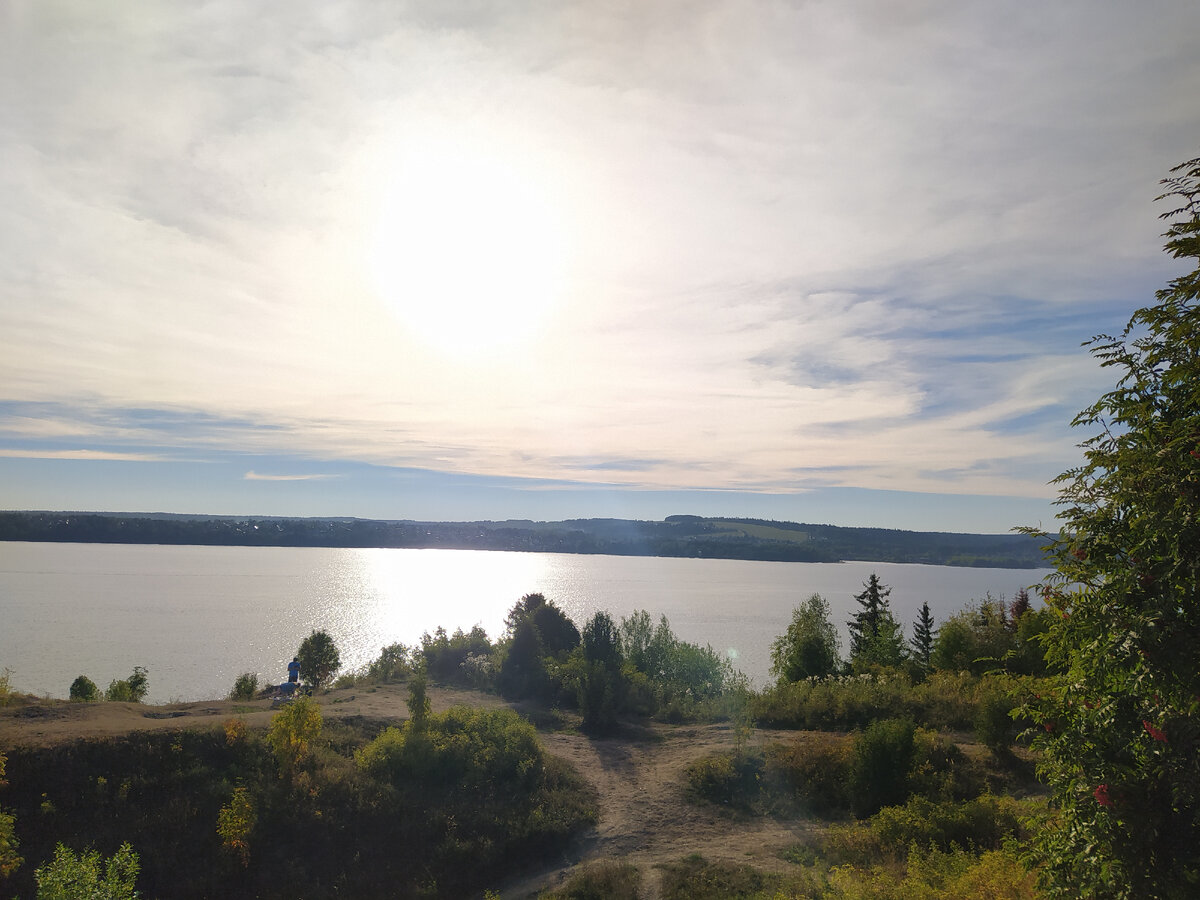 Едем по дачному поселку, пробираясь по узким улочкам, то и дело сворачивая в самых неожиданных местах... Мы едем на Мыс Стрелка к месту слияния Камы и Чусовой. И вот, улочка на одну машину с обрывом по правой стороне заканчивается... Видим овраги, дорогу по краю оврага и водную гладь с Пермью на горизонте. Нам надо вниз. Съезжаем туда, где уже стоят машины. Сьезд вполне приличный, на моей "пузотерке" никаких проблем со спуском вниз не возникло. И вот они - Кама и Чусовая. Чусовая слева, а Кама справа Мыс Стрелка - одно из самых популярных мест для отдыха у жителей Перми. Ехать совсем близко - можно добраться на автомобиле, электричке, а, для тех, кто любит крутить педали, также не составит сложности прокатиться до мыса на велосипеде. Здесь всегда много как тех, кто приехал сюда с палатками на пару дней, так и тех, кто приехал на пару часов. А еще, совсем рядом находится яхт-клуб и можно под парусом плыть по воде... На самом краю мыса установлен крест Мыс Стрелка, конечно же, имеет с