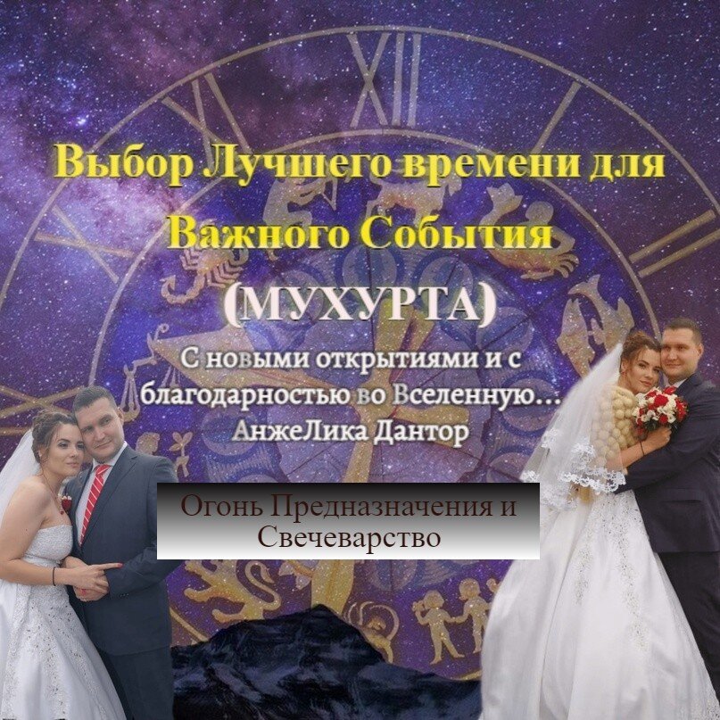 «Всякое дело будет иметь успех, если оно начато только в благоприятное для этого дела время» «МухУрта» — это наилучшее время для какого-либо важного дела, события, начинания, а также единица времени, равная 48 минутам. Что применяет в работе астролог при подборе Мухурты для пары? Для этого - делается анализ карты брака партнеров, а точнее времени, когда он был заключен. Это время отразит «мухурту события» и покажет судьбу/карму узаконенных отношений. По итогу анализа, по данной карте можно узнать, что ждет совместный союз и его представителей: Среди популярных тем, также остаются вопросы, связанные с началом нового бизнеса, операций, обучения и т.п. Подобно гороскопу человека, гороскоп любого события - это «снимок неба», отражающий всю картину того или иного начинания/дела, включая его прошлое, настоящее и будущее. Именно поэтому, подбор мухурты, является и упАйей (коррекционное средство негативной кармы), когда астролог подбирает мухурту, он использует самые благоприятные для вашего