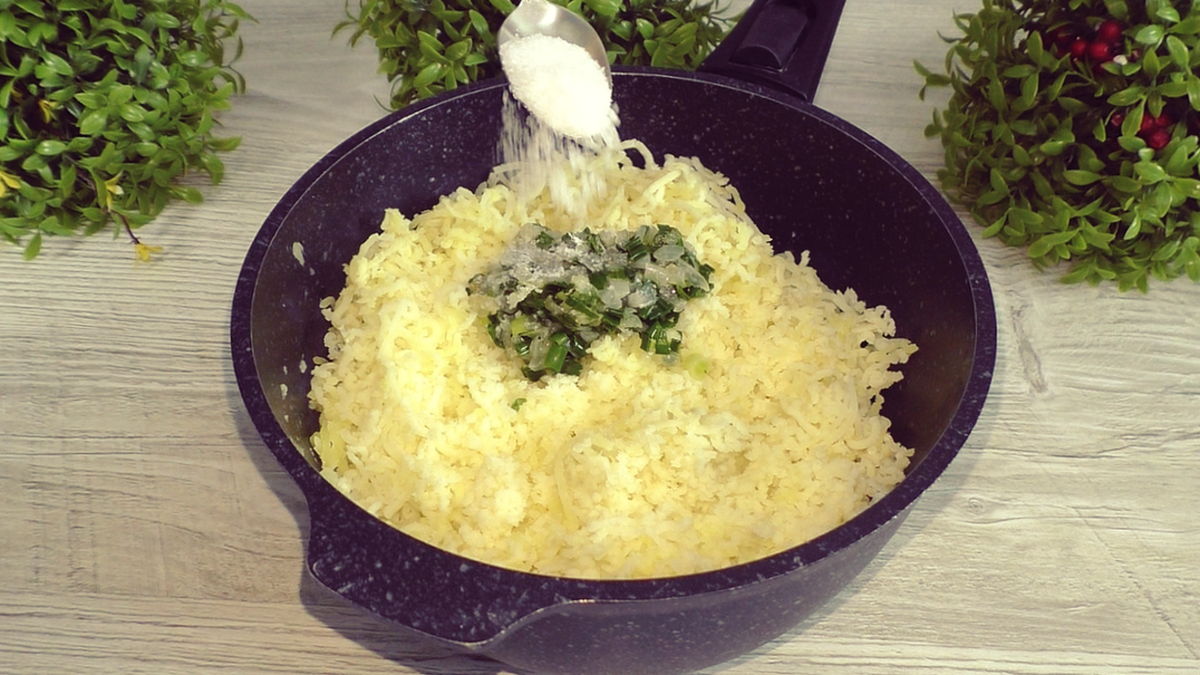 Для начинки: картофель; я отварила, не солила.