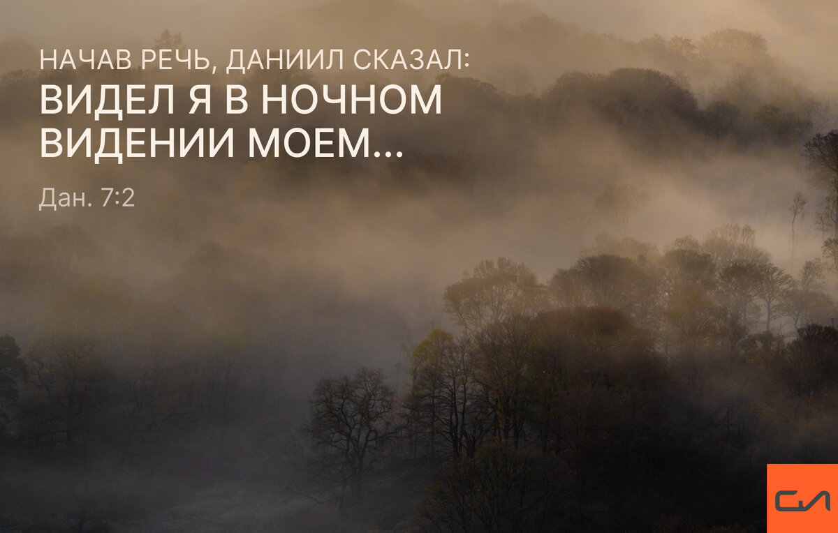 Начав речь, Даниил сказал: видел я в ночном видении моем, и вот, четыре ветра небесных боролись на великом море… (Дан. 7:2).