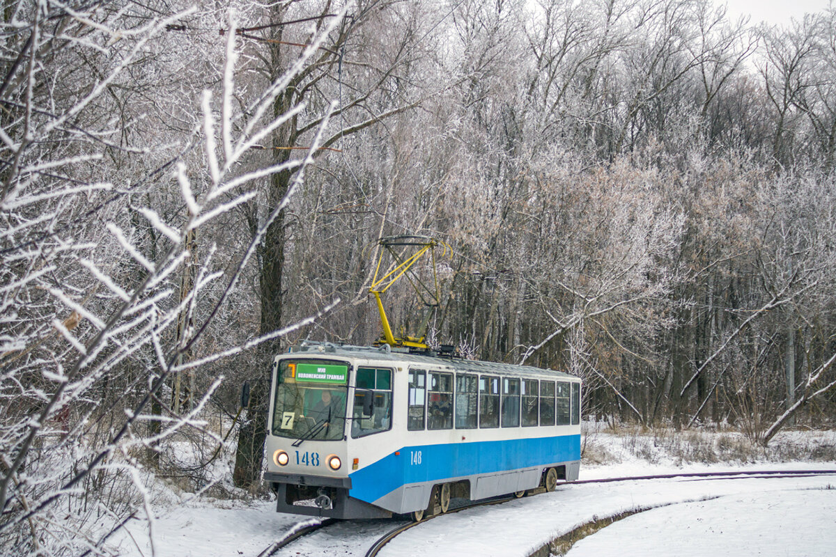 Коломна. Кольцо "Мясокомбинат". Вагон 71-608КМ № 148 — маршрут 7. 3 декабря 2022 года. Фото: Ivanchik228.