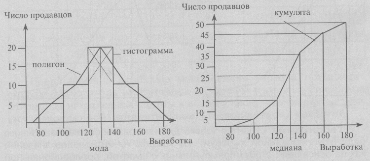 Для отображения вариационных рядов распределения используются следующие графики: полигон, гистограмму и кумуляту.