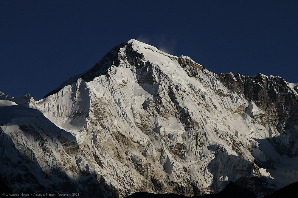 Предыдущая ЧАСТЬ 22: "Непальские дневники — 22. Дорога в Гокьйо". Все материалы по теме находятся в подборке: "Непальские дневники". За поселком Гокьйо белеет восьмитысячник Чо Ойу (8201м). Говорят, что он не очень сложный для восхождения, хе-хе… Чо Ойу – шестой по высоте восьмитысячник в мире. Всего их 14. Происхождение звучного запоминающегося названия Чо Ойу туманно. По мнениям разных людей, Чо Ойу означает или «бирюзовая богиня», или «голова Бога», или «милость богов»… Всё это разные версии перевода с тибетского. Но нам больше всего понравилась версия «бирюзовая богиня». Что-то в душе на это откликается… Вот оно озеро Dudh Pokhari. Вода считается священной. Энтузиасты купаются. Мы не рискнули. Впереди еще набор высоты. Идти вверх с температурой не очень хотелось. Каменные пирамидки и камни с высеченными на них священными текстами – неотъемлемая часть здешнего высокогорного пейзажа. Кругом сушится кизяк – помет высокогорных яков. Эти огромные мохнатые обаяшки гадят столько, что хват