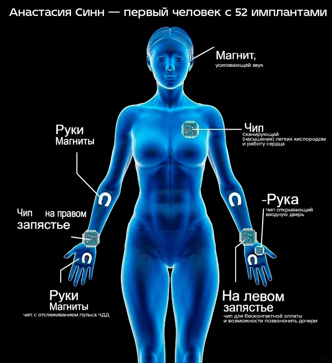 Итак, каковы последствия? Анастасия говорит, что она киборг-волшебник, трансгуманист и биохакер, у которой 52 имплантата и она планирует встроить еще больше!