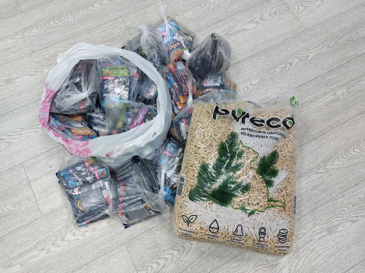Привезли котикам подарки и угощения. Подарки передали нам наши помощники И еще вот такой домик собрали Марика принимает еще подарок - кусочек матраса. Если вы вдруг работаете в магазине матрасов и у вас есть ненужные образцы, отдайте их нам) Поснимали котяток для пиара