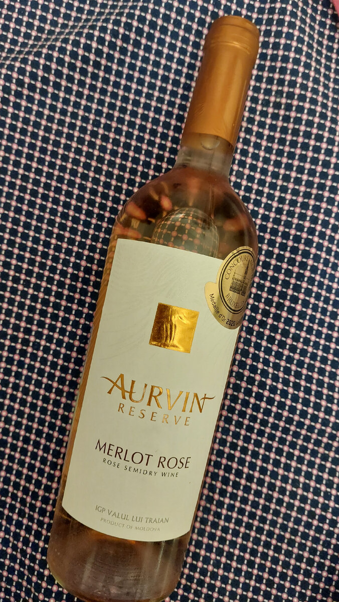 В бюджетном сегменте одной из наиболее трудных задач является поиск достойных вин, производство которых требует по той или иной причине бОльших усилий от виноделов. Тем ценнее находки, которых вовсе не ожидаешь. Без долгих прелюдий: сегодня расскажу Вам про Aurvin reserve merlo rose, полусухое моносортовое вино из винограда мерло от молдавского гиганта Dionis group. Вино розлито в прозрачную бордосскую бутылку, благодаря которой можно сразу порадоваться лучезарному цвету напитка. Этикетка интересная и современная, фактурная. В целом на любителя, но однозначно небанальная и яркая. Кроме прочего она весьма информативна. Видим много информации: и о вине, и о месте, и о стране изготовления. Также к этикетке в правом верхнем углу приклеена "медаль": вино получило золото в 2022 году на некой международный выставке в Брюсселе. Несовсем понятно, но за производителя радостно. Контрэтикетка образец информативности. По традиции даже есть маленькая карта региона произрастания винограда. Также есть
