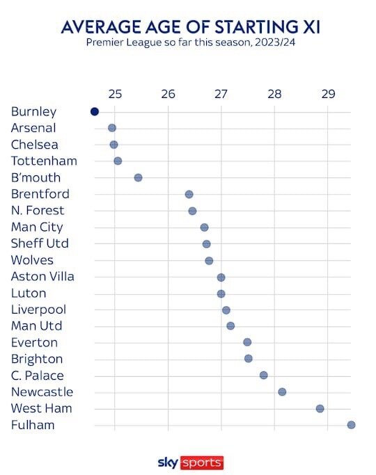Интересно, что лидирует «Бернли» - команда, которая не ассоциируется с молодостью.