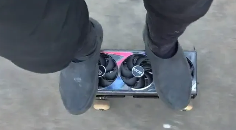 Блогер превратил кулер от RTX 4090 в современный скейтборд и показал, как на нем кататься