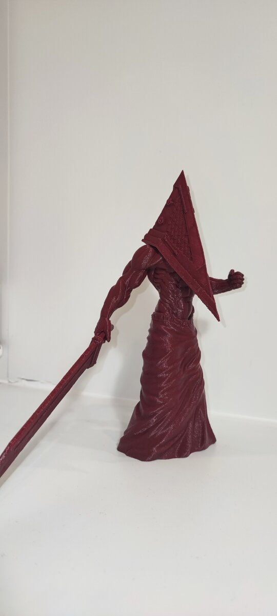 Все началось с печати двух балерин-близняшек из Atomic Heart. После этого ко мне обратилась девушка с просьбой напечатать ей фигурку Пирамидоголового из городка Сайлент Хилл. Перед печатью у меня не было нужного цвета пластика поэтому пришлось заказать. Общее время печати составило около 24 часов. Модель составная состоит из 5-ти частей. После печати были удаленны поддержки, подгонка деталей друг к другу и наконец склеивание. (К сожалению не сделал фото не склеенных частей)