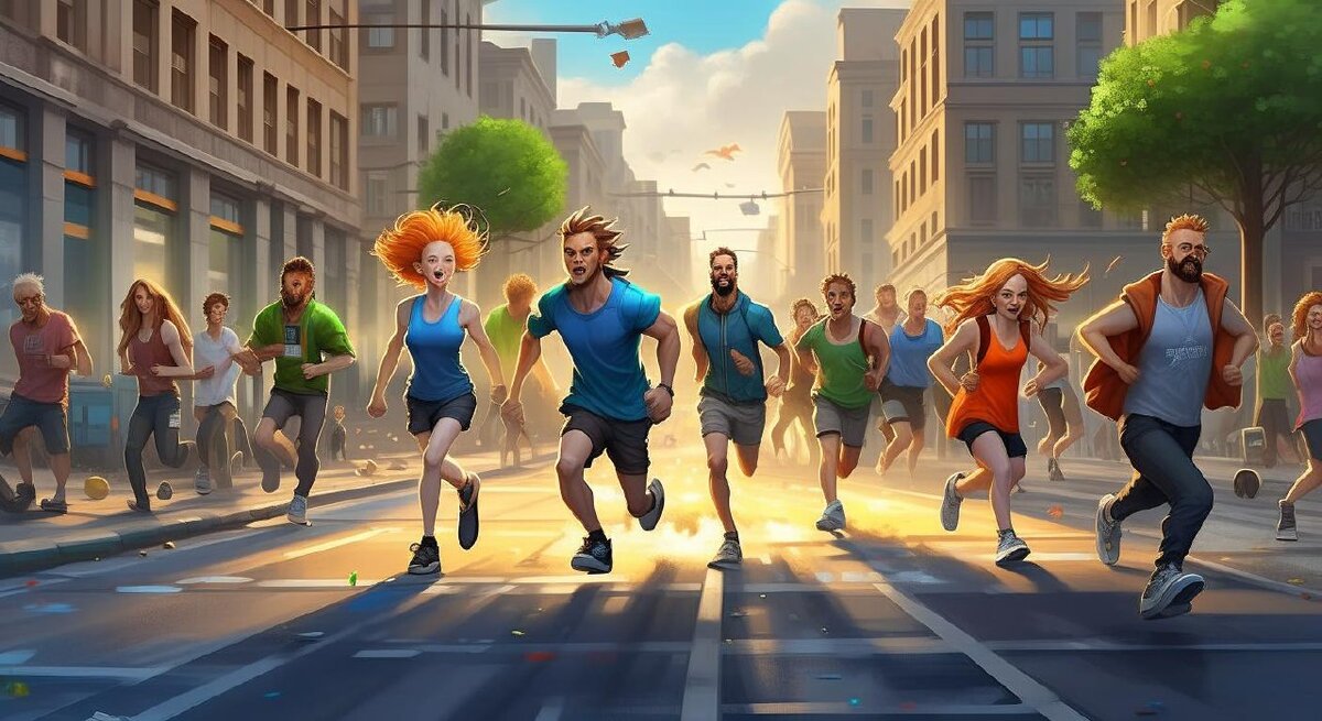 Финишное ускорение. Снова препятствие – плачет чей-то ребёнок. Он не должен никого волновать. Пусть его родители волнуются. Но часть бегунов так не думает и спешит на помощь.