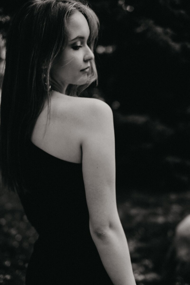 Образ женщины в чёрном - очень популярный и востребованный в фотоискусстве. Чёрный цвет подчёркивает загадочность и элегантность женской натуры. В чёрном платье женщина выглядит эффектно и стильно. Чёрный очень хорошо смотрится на фото - он создаёт глубину в кадре, выгодно подчёркивает силуэт. Игра света и тени на чёрной одежде создаёт дополнительный объём. Образ можно дополнить аксессуарами в тон - изящным клатчем, перчатками, шляпкой. Чёрные кружевные перчатки придают особую загадочность. Алая помада ярко выделяется на фоне чёрного и подчёркивает сексуальность. Чёрное платье отлично смотрится в съёмках на природе. Контраст мягких пейзажей и строгого наряда создаёт интересный эффект. Также выигрышно выглядят снимки в интерьере с чёрно-белым декором. Нюансы освещения позволяют создать разные образы женщины в чёрном. Мягкий свет подчеркнёт женственность и нежность. А рельефное освещение с сильным контрастом создаст впечатление загадочности и таинственности. Таким образом, чёрный цвет в