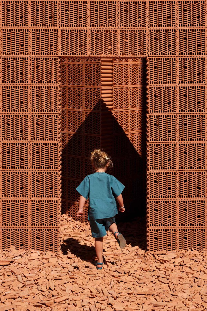 Время: 2021 Кирпич - честный материал. Он для всех одинаков, но каждый видит его по-разному, работает с ним по-разному и результат у каждого получает разный. Когда ленится архитектор, когда ленится конструктор, когда ленится строитель - это становится сразу видно по унылой коробке с окнами, выложенной кривой кладкой с потеками цемента. Когда всем интересно "играть в кубики" - мы видим различные узоры, обломы, арки, параметрические стены из кирпича с красивой расшивкой швов. Эта инсталляция при помощи модуля кирпича исследует разные типы пространства и их воздействие на человека. Кирпич здесь не только модульный конструктивный материал, но и декоративный элемент - пустоты в кирпиче образуют орнамент на всех типах поверхностей. Пол усыпан кирпичной крошкой, для того чтобы человек мог не только оказаться в пространстве из кирпича, увидеть кирпичный орнамент, почувствовать запах кирпича, но и, идя сквозь инсталляцию, наполнит