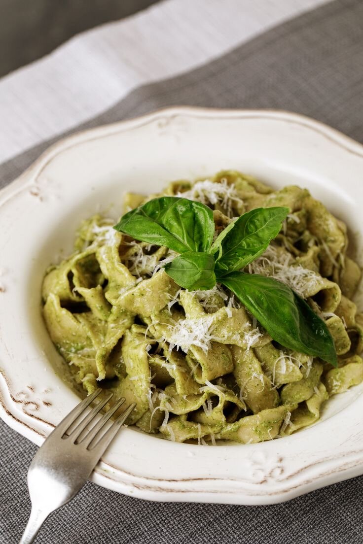 Паста песто – это блюдо из итальянской кухни, которое состоит из спагетти или других видов пасты, приготовленных с соусом песто. Этот соус является одним из самых популярных в Италии и за ее пределами благодаря своему богатому вкусу и простоте приготовления. Соус песто имеет свои корни в регионе Лигурии, где он был придуман в 16 веке. Он состоит из базовых ингредиентов: базилика, оливкового масла, чеснока, сыра пармезан и кедровых орехов. Все ингредиенты смешиваются вместе до получения гладкой пасты. Существует множество вариаций рецепта пасты песто, но мы поделимся с вами классическим и самым простым способом приготовления этого соуса. Ингредиенты: - 2 стакана свежего базилика - 1/2 стакана оливкового масла - 1/3 стакана кедровых орехов - 3 зубчика чеснока - 1/2 стакана тертого сыра пармезан - Соль и перец по вкусу Инструкции: 1. Начните с того, чтобы отделить листья базилика от стеблей. Листья должны быть свежими и зелеными, без пожелтевших или подсохших краев. 2. Положите бази