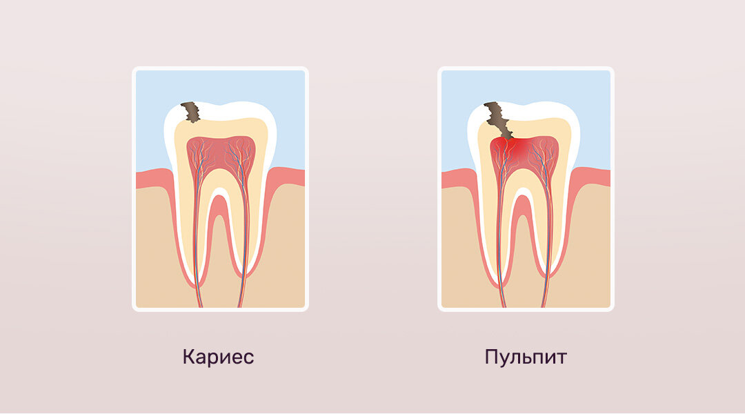 Чем глубже проникают кариесогенные бактерии, тем сильнее болевой синдром. Кариес перетекает в пульпит. Для него характерны самопроизвольные резкие болевые ощущения (часто они усиливаются в ночное время). Их сложно локализовать. Непонятно, какая единица проблемная.