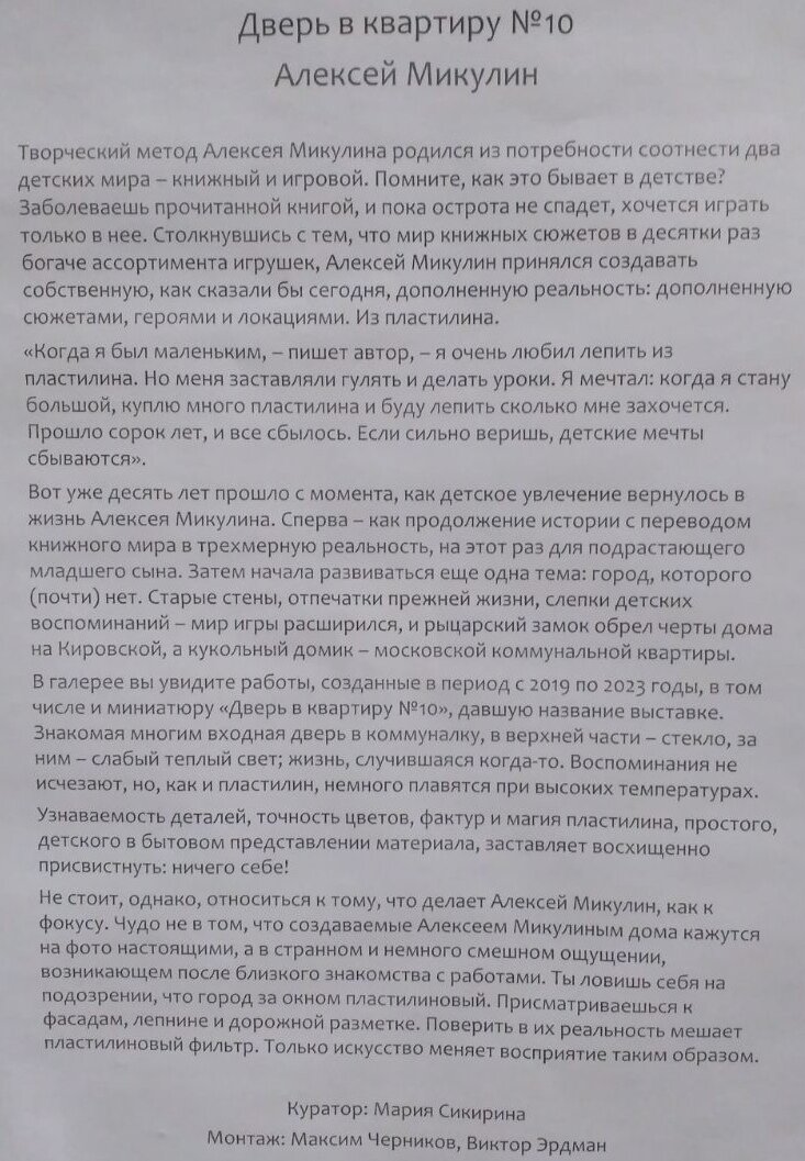 Выставка Алексея Микулина "Дверь в квартиру №10". Композиции из пластилина.