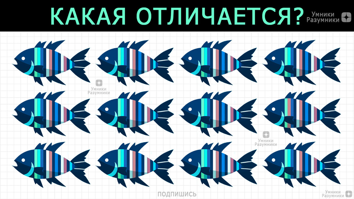 Приветствуем всех гостей и читателей нашего канала 👋 Предлагаем выполнить занимательную подборку заданий для проверки и развития умственных способностей 😉 Вместе с тем, головоломка – это источник удовольствия, который занимает ум и вызывает интерес. Давайте же скорее приступим ✌️ 1. Задание В этом задании предстоит сосредоточиться и обратить внимание на детали, чтобы найти единственное отличие между идентичными изображениями рыбок. 2. Какое из чисел отличается? Среди чисел "890976", есть только одно лишнее. Внешне они выглядят почти одинаковыми, но одно из них отличается от остальных. Наша задача состоит в том, чтобы найти это число. Что это за число и в каком ряду оно находится? 3. Какая понни эдинорог отличается от других? Несколько наших прошлых выпусков