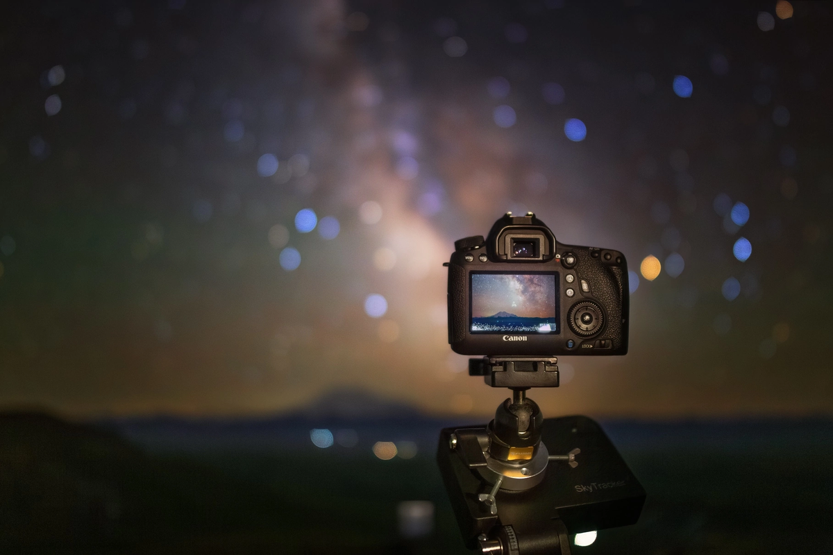 Иногда астрофотографы снимают сами себя, иногда своих коллег, а иногда их камеры за работой. На фото запечатлён именно такой момент съёмки съёмки. Камера установлена на трекер - устройство, которое поворачивает её вслед за вращением звёздного неба, чтобы компенсировать смаз на длинной выдержке. Следующий творческий шаг - пригласить ещё третьего астрофотографа и снять съёмку съёмки. А потом ещё... Вобщем рекурсивное получилось фото) Снято одним кадром. Плато Бермамыт, Северный Кавказ, июль 2023. 📸 6D, 24mm, f/2.0, 15 sec, iso 800