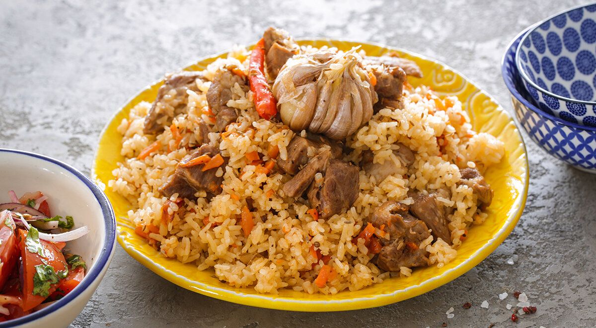Вкусный плов из свинины может приготовить даже начинающий кулинар — если предварительно изучит некоторые тонкости. Конечно, это будет упрощенный вариант знаменитого блюда, но во время дегустации разочарованных точно не будете. В качестве мясной составляющей предлагаем взять свинину: она дешевле баранины или говядины, да и готовится быстрее. Ну а сам процесс очень напоминает классический: сначала обжаривается лук с морковью, затем — мясо, после чего добавляются рис, специи и вода. Ну а пока плов будет доходить до нужной кондиции, вы вполне успеете нарезать помидоры, репчатый лук и соорудить салат, который традиционно подается к этому блюду в Узбекистане. ИНГРЕДИЕНТЫ РЕЦЕПТ ПРИГОТОВЛЕНИЯ Шаг 1 Подготовьте ингредиенты для плова. Свинину вымойте, обсушите и нарежьте крупными кубиками. Морковь вымойте, очистите и нарежьте соломкой. Лук очистите и нарежьте полукольцами. Шаг 2 На плиту поставьте казан, чугунную глубокую кастрюлю или сотейник с толстым дном и стенками. Нагрейте емкость. Влейте