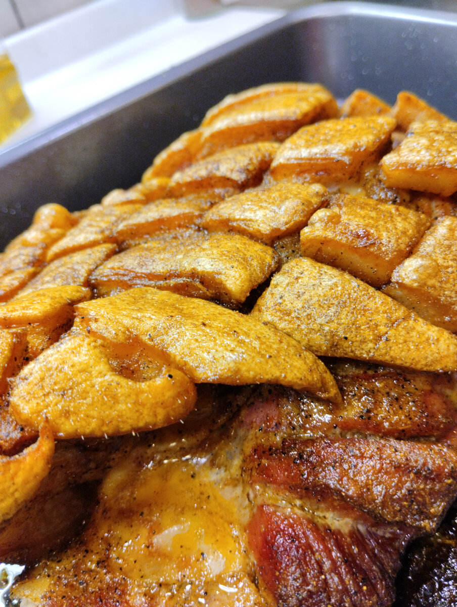 Пикантная свиная грудинка, запеченная в духовке.