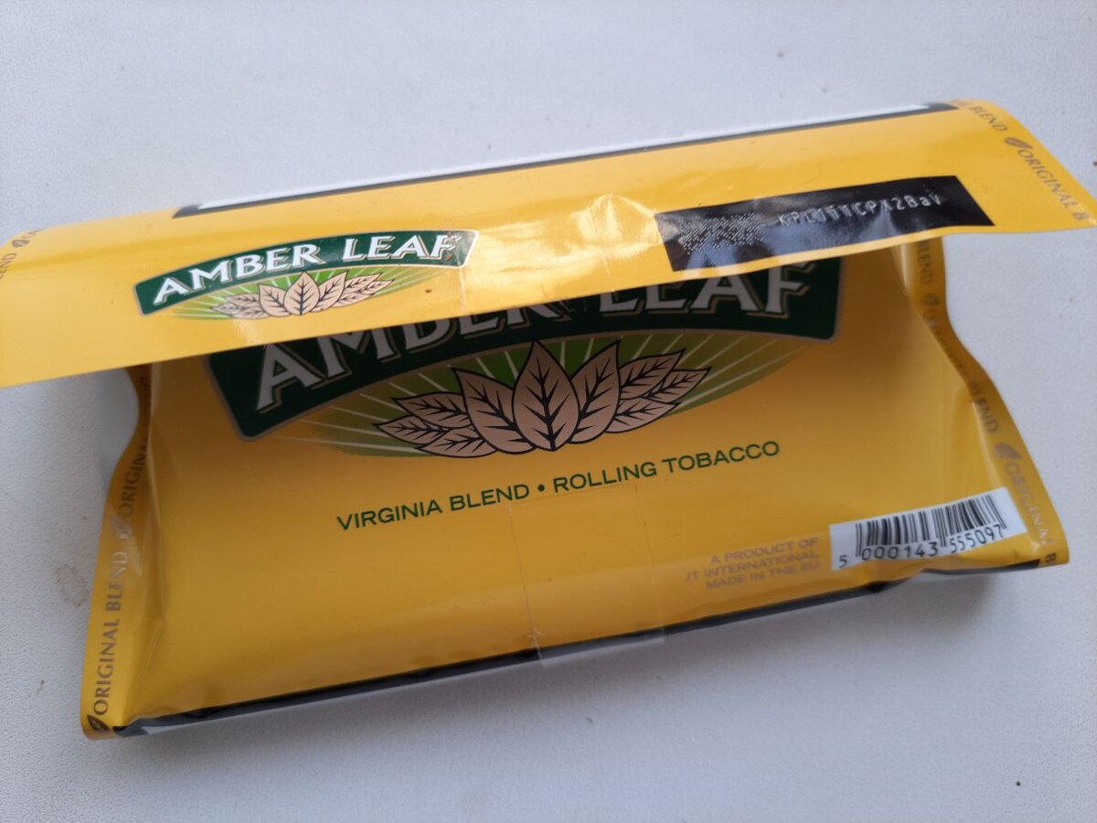 На недавней встрече с друзьями – подписчиками канала «Записки про табак» - мне подарили кисет табака, который был приобретен в магазине Duty Free одной из европейских стран. Настало время познакомиться с продуктом. Внимание! Данная публикация предназначена для совершеннолетних граждан. Я не рекламирую табачную продукцию и продавцов, и не пропагандирую курение. Записка основана на личных ощущениях и носит ознакомительный характер. Курение вредит вашему здоровью! Amber Leaf – довольно известная марка табака для самокруток. Сейчас права на бренд принадлежат японской корпорации JTI, как, впрочем, и на многие другие бренды, изначально родившиеся в Англии. По словам представителей JTI, для производства самокруточного табака Amber Leaf используется табак сорта Вирджиния преимущественно светлых тонов, средней крепости и мягкого вкуса. При этом в состав бленда может входить до десятка Вирджиний, собранных в разных странах мира. Точная рецептура, как обычно, держится в секрете. Amber Leaf фасует